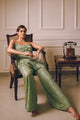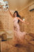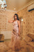 A blush pink draped gown adorned with sequins and crystal embellishments, layered in soft tulle. Flowing with effortless movement, it’s crafted for statement evenings, soirées, weddings, and modern celebrations.