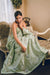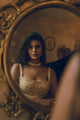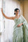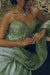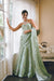 An ivory-gold saree intrica...A pastel green embellished corset set with crystal embroidery, paired with a flowing skirt and drape. Silent strength is craftedfor the woman stepping into her power with grace and radiance. Perfect