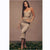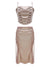 The top of the Bourbon Two Piece features a chic, off-the-shoulder neckline, which is both trendy and timeless. The neckline is designed to show off your shoulders and collarbones, giving you a feminine and alluring look. The top is fitted to your body, with a flattering ruched detail that adds texture and depth to the dress.