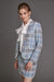 The blazer features a double-breasted design with elegant pearl buttons that add a touch of luxury to the outfit. The long sleeves are perfect for keeping you warm during the colder months, while the tailored fit creates a flattering silhouette that accentuates your curves.