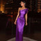 In a regal purple hue, the "Purple Martini" dress is a showstopper at any event. The one-shoulder design adds a contemporary flair, drawing attention to the neckline and allowing for a hint of subtle allure. A strategically placed side slit adds a touch of drama and ensures easy movement, making it the perfect choice for dancing the night away.
