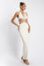 This dress's standout fashion element is the tasteful cut-out design, adding a touch of edginess to its otherwise modest and timeless style. The woven YARN DYED technics infuse depth and richness into its fabric, making it an exceptional choice for club nights and special occasions.