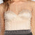 Pearl Embellishments: The defining characteristic of a pearl mesh top is the presence of pearl embellishments. These pearls are often sewn onto the mesh fabric in intricate patterns or designs. The combination of the delicate pearls against the mesh background creates a striking contrast.