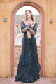 A navy embellished set with...An ivory-gold saree intricately hand- embroidered with floral motifs, embodying grace and timeless sophistication. Perfect for Engagements, receptions, sangeet nights, and luxury destination weddings.