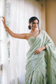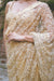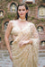 An ivory-gold saree intricately hand- embroidered with floral motifs, embodying grace and timeless sophistication. Perfect for Engagements, receptions, sangeet nights, and luxury destination weddings.