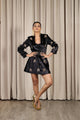 BlackGold- Chain Hand Emb...Light Brown Pearl Hand Embroidered Velvet Short Dress