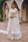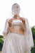 An ivory white lehenga with tonal embroidery and sheer sleeves, exuding understated glamour for weddings and festive occasions.