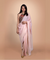 Saree - The soft pink organza pre-stitched saree has a delicate, fluid drape with subtle embellishments, complementing the bold blouse. The saree is structured to create precise, architectural pleats that stay in place effortlessly. Scattered sequins and beads subtly enhance the saree, adding a shimmer effect without overwhelming the design.
